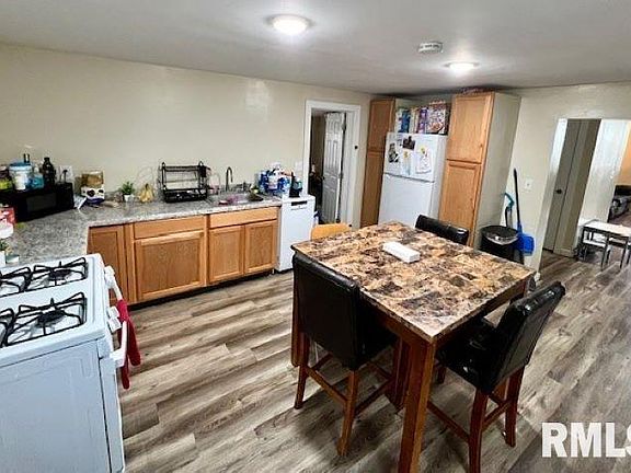Updated and SPACIOUS 3 bedroom / 1 bath home in Pekin! Great key features from the eat-in kitchen, main floor laundry and LARGE upstairs bedroom! Recent Updates include : Flooring, Drywall, Electrical, Plumbing a nd Duct Work (2019) * Parking pad, back porch, Heating and AC, Water Heater (2022) . Appliances stay but not warranted . Put this home on your MUST see list!