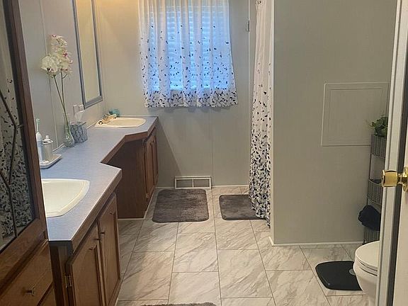 Beautiful 3 bedroom 2 full bath double wide in the Airport Senior Community Park (55+ community). Home features an eat in kitchen with an island, new backsplash, large living room, brand new master bathroom with a walk in shower, high efficient gas furnace and central air. Home has a nice covered porch with a patio for your enjoyment. Enjoy the convenience to shopping, dining and RPH/Guthrie Clinic, along with socializing in the Community Club house. Approval of application by Park Association Manager is required. Call today to see this one it won't last long.