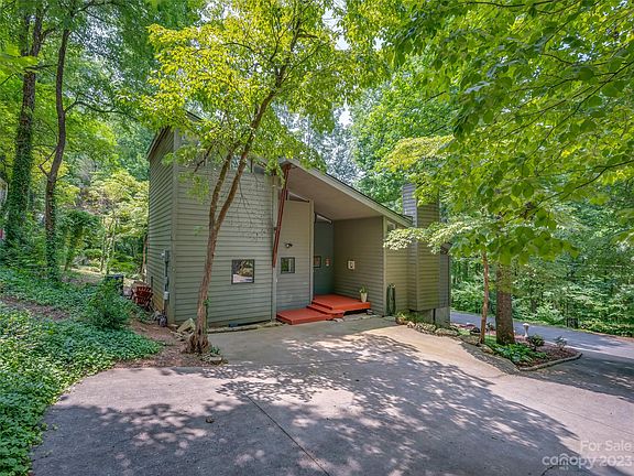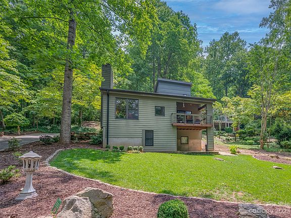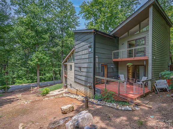 Very unique modern home with tranquil yard in Rumbling Bald on Lake Lure. Spacious living room with wood burning fireplace, LVP floors, tons of windows. Covered deck off the dining room and tons of kitchen cabinets & counter space. Bedroom with private patio and full guest bathroom on the main level. Primary bedroom with sliding panel doors that can open for a loft effect and sliding glass door to private side deck. Large primary bathroom with tile shower, garden tub and modern dual vanity. Laundry room conveniently located across from walk-in closet with built-ins. Unfinished basement with a portion that has drywall & HVAC ready to finished to your specifications while still being able to have a utility/storage room, Rumbling Bald amenities include private beach, marina, two world class golf courses, indoor and outdoor pools, tennis courts, fitness center, spa, salon, restaurants and full-service bars.