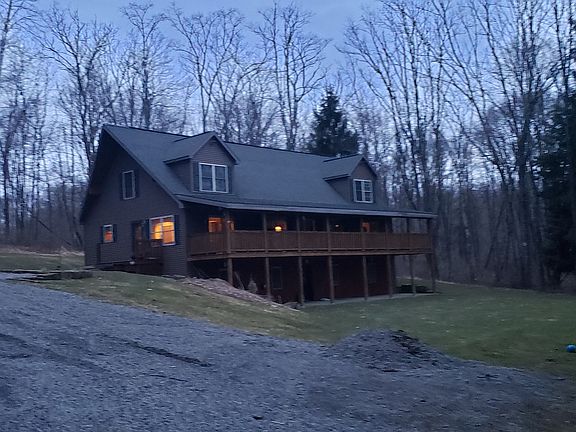 Lodge style custom home with extensive detached garage and stand alone fully livable cabin on wooded lot. Public sewer, water provided by both well and spring. Lots of woodwork, cathedral ceilings and beautiful wooded setting.
