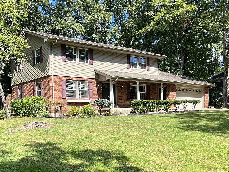 Roomy Comfort!!! Great home for active family. This lovely brick & vinyl home located in Lakeview Heights has some amazing features. The Great Room has beautiful hardwood floors and a free-standing stone fireplace. The eat-in kitchen has stainless appliances and plenty of cabinet space. The primary bedroom suite bath room features double bowl vanity and tiled showers. Three more bedrooms and another full bath are all on 2nd floor. All bedrooms have nice carpet. There is a half bath on main floor as well as a laundry room. Patio doors lead to your nice patio area and manicured lawn with mature trees. Also for your convenience there is a double car attached garage. City of Lakeview Heights Restrictions apply. Call today for your private showing.