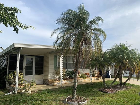 Well Maintained 2-bedroom 2 bath home in a great location. 1152 sq. ft, nice layout, Detached huge laundry room and storage unit. Roof-over is 10 yrs. old, well maintained. Lush landscaping, beautiful palm trees, great curb appeal, new floor in bathroom. All appliances, a/c, roof, floors have been maintained and are in good working order. Nice enclosed all season lanai off the living room. Florida retirement living at a reasonable price. Land Lease $847.66 Ready for you to move in and add your own personal touches to make it your own. Lots of amenities and active lifestyle at Colony Cove. We have the best residents here. All listing information is deemed reliable but not guaranteed and should be independently verified through personal inspection by appropriate professionals. Integrity Mobile Home Sales cannot guarantee or warrant the accuracy of this information, measurements or condition of any property. Measurements are approximate. Lot rent is subject to change.