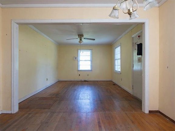 2 Bedroom/1 Bath ranch with hardwoods through-out. Kitchen offers black cabinets, bar top counter, breakfast area and pantry along with a gas stove. A family room, dining room and bonus room bring the charm all together. Large backyard with out building. Great investment property!