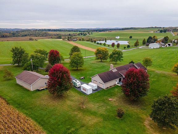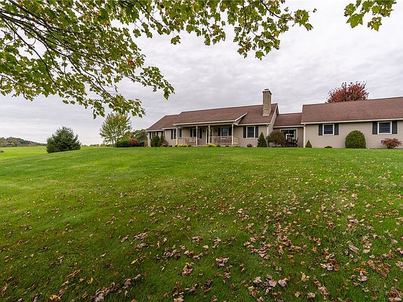 If you are looking for country views and privacy look no further!! This sprawling 4 BD, 2 BA ranch close to Portersville includes 5 beautiful acres surrounded by the rolling hills of Pennsylvania. You won't want to leave the covered front porch! But when you enter the front door, you find the inside is as lovely as the outside. The 11 ft stone fireplace is the focal point of the spacious family room that opens into the rambling kitchen. The beautiful country kitchen is perfect for gatherings and walks out to the large deck. The 12x20 enclosed breezeway with knotted pine ceiling has sliding doors out the front and the back. The master suite includes a walk in closet, plus a double closet. Storage galore in this house! The 22x23 family room in the basement is a fabulous place to hang out and play cards! The 4th bedroom with egress window is located here and the basement is plumbed for a bathroom. Work shop in basement. The 48x30 detached garage hosted a wedding reception!