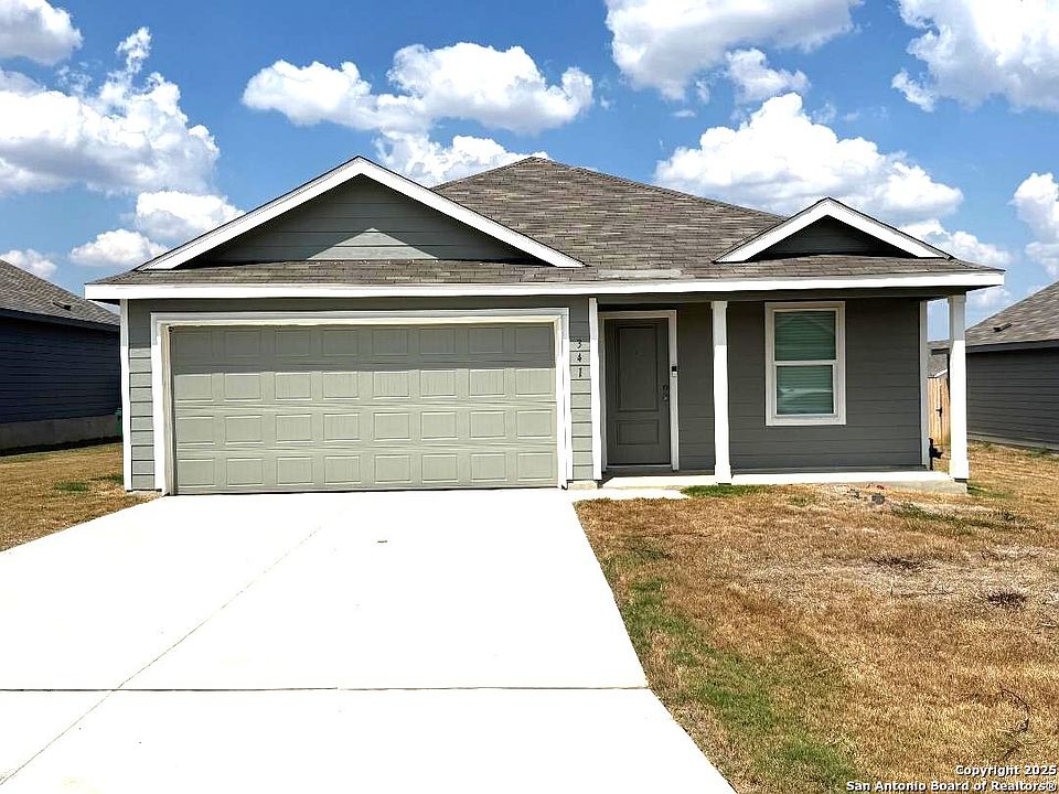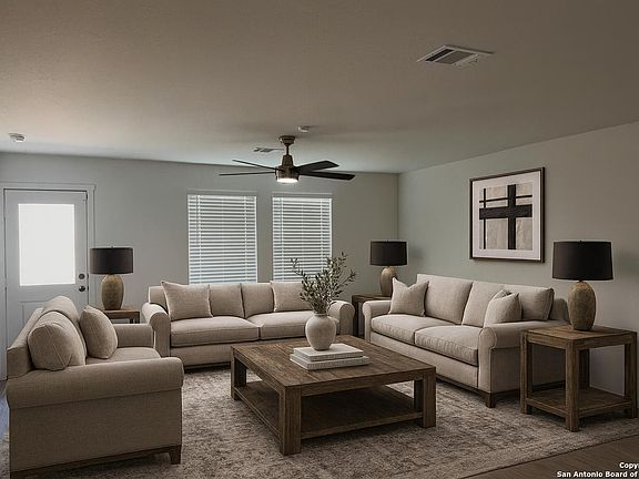 Move-in ready and never lived in! This beautiful 4-bed, 2-bath, 1,668 sq. ft. home in Jourdanton offers the feel of a brand-new build with thoughtful upgrades already in place. Enjoy a bright, open one-story layout with gas cooking and a spacious living area. Owner upgrades include an alarm system, custom blinds, ceiling fans in the living room, primary suite, and a secondary bedroom, plus a garage door opener for convenience. Step outside to a large backyard deck and privacy fencing, perfect for entertaining or relaxing. A transferable builder warranty provides added peace of mind. A rare opportunity to own a like-new home with extras already done-just bring your furniture and start living!