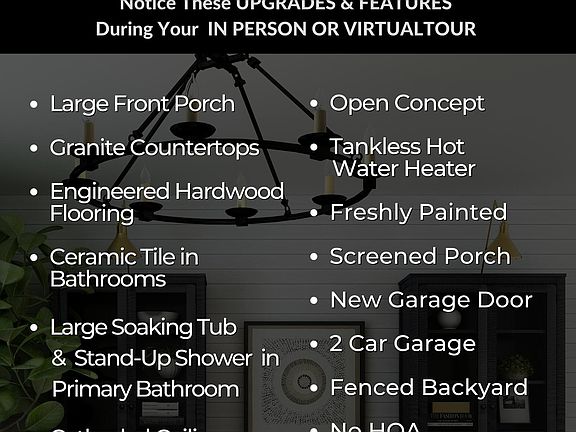 This welcoming 3 bed, 2 bath, 2 car garage home with NO HOA, is located in Citadel Woods, close to downtown Charleston, Citadel Mall, shopping, restaurants, & the greenway. The large front porch invitingly beckons you, your family, and your future guests inside, revealing a spacious open floor plan in engineered hardwood. Freshly painted, the eye first wanders to the modern fireplace, cathedral ceilings, and the abundance of natural light. Exploring into the kitchen and eating nook, matching appliances contrast nicely against newly installed granite countertops. Elegantly set in ceramic tile, eliminate worries in the primary bathrooms' large garden tub, filled by a tankless hot water heater. Continue out the backdoor to find a roomy screened porch and a fully fenced yard. Invitations