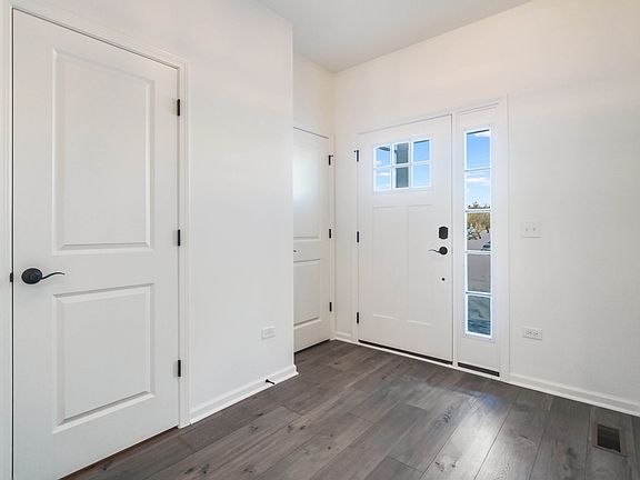 Welcome to the Bradie-one of five floorplans in the Hampton Series. The exterior is a modern, craftsman-style townhome that includes gray smartsiding with a stone facade, large windows, and a covered porch with the opportunity to showcase your favorite seasonal flowers or decorations. Upon entering the foyer, you'll notice the den with glass French doors, located across from the powder room and coat closet. Work from home in peace and quiet or catch up on a gripping novel in this ideal space. From the foyer, you have a clear view of the great room for those seeking for an open-concept townhome. The gourmet kitchen features 42" Merillat Spring Valley Cotton cabinetry and quartz countertops is adjacent to the dining room, and the large kitchen island with undermount one bowl stainless steel sink and matte black faucet is made for entertaining. It even offers additional seating area for guests. From the dining room, you have views of your private outdoor deck! You can easily enter your outdoor space between the laundry room and kitchen. Upstairs are three bedrooms and a hall bathroom. The second and third bedroom are adjacent to another, both providing an equal amount of closet space. There's also additional closet space before the entry of the third bedroom. The owner's suite has ample space with large windows, a tray ceiling and the walk-in closet of your dreams! The ensuite features a large tiled walk-in shower, separate soaking tub a double bowl raised vanity topped with quartz and private linen closet! You can beautifully organize all your belongings with plenty of space and shelving. Let's not forget to mention the full basement with rough in plumbing in the Bradie! The basement is a coveted feature for extra storage space or for additional living space. Contact our Internet Sales Managers to secure your spacious, modern, craftsman-style townhome with 1,992 sq. ft. of living space in Buffalo Grove! This Bradie features: Three bedrooms two-and-a-half baths and two-car garage. Broker must be present at clients first visit to any M/I Homes community. Lot 8202