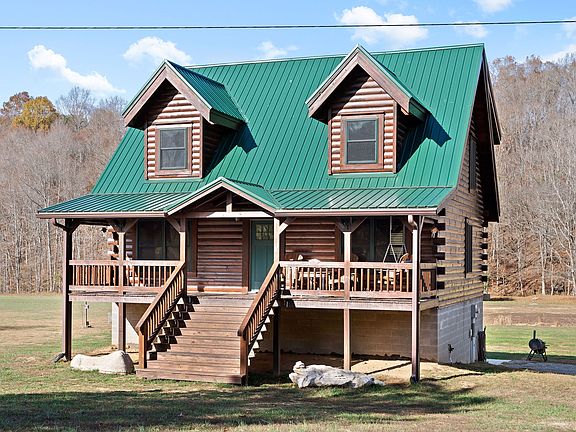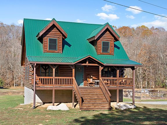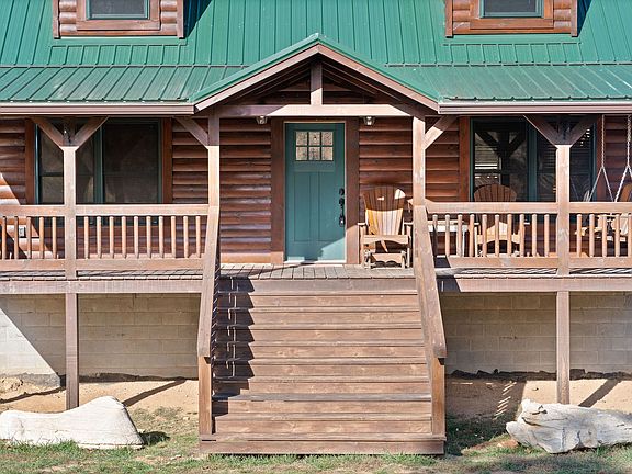 Gorgeous cabin style home perfectly placed on 5.89 acres and a finished basement that includes a half bath & built in bar! Real hardwood floors throughout the house & a huge stone fire place in the living room! Kitchen has plenty of counter space & window above the sink. Land includes an area for a pond, 2 outdoor buildings remain with property, and a fenced in garden area. GE washer & dryer, 4 door refrigerator with French doors, kitchen oven/stove, microwave Flatscreen & mounts in primary bedroom & flatscreen with mounts in basement all convey. Basement is currently heated by Fortner propane tank, buyer has option to keep the tank or remove - Please call agent for more details. Allow sellers 1hour showing notice.