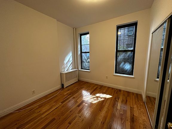 Then there's the bedroom, which has two windows, and is big enough for a queen-sized bed, measuring 10 x 10' and a large mirrored closet.