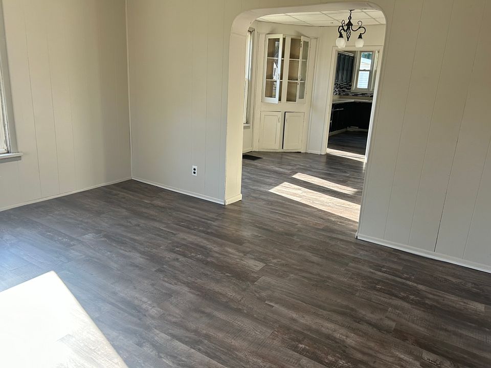 You will love this beautiful 3 bedroom, 1 bathroom home. You will enter to the large living area leading into the dining room. There is one bedroom off the living room and one off the dining room. Heading further back in the house is the kitchen with the brand new stove. The third bedroom is just off the kitchen. You can head out back to hang out on the deck. There is a large two car garage as well. New carpet, flooring and paint throughout. Schedule a showing today! No Smoking Allowed. Tenant is responsible for all utilities, lawn care and snow removal.