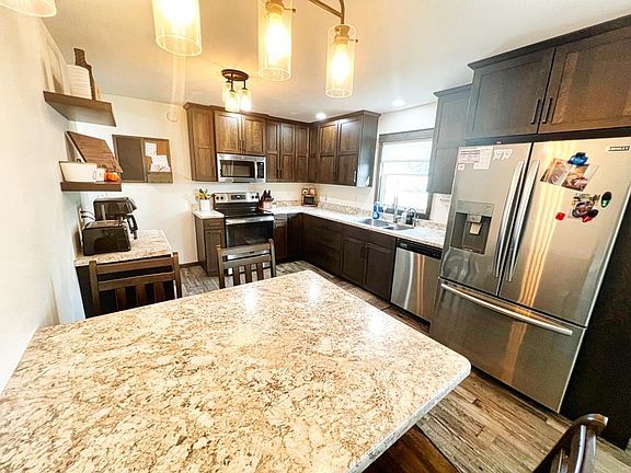 Looking for garage space along with 4 bedrooms... then this is the home for you! The current owners have totally remodeled the main floor of this Cape Cod style home to include all new flooring, trim, windows and doors. There is a custom kitchen with cabinetry by Gossling Cabinets. They are beautiful! The bathroom was also totally remodeled. The main floor has two bedrooms and the bathroom. Upstairs are two additional bedrooms that could use a little updating, but the dormers create great character for bedrooms. Now for all the garage space... the garage attached is 640 sqft and is newly insulated and finished. There is detached storage garage consisting of an additional 1,040 sqft! Perfect if you have a car/atv/boat to store or tinker on. The lot size is also larger than average coming in at almost a half-acre - 19,650 sqft. The furnace and CA were new in 2019 and the roof in 2020. The newly poured cement patio to the rear of the home is a great place to host a grill out or unwind at the end of the day.