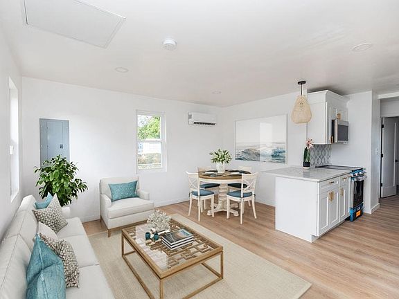 Charming Coastal Cottage! Discover the perfect blend of modern upgrades and coastal charm in this beautifully redone 2-bedroom, 1-bathroom home nestled in the sought-after Miami Beach section of the Villas. Situated on a 60x100 +/- lot, this home offers plenty of outdoor space to relax and entertain. Every inch of this home has been thoughtfully redesigned, featuring a custom kitchen, boasting brand-new stainless-steel appliances, quartz countertops, and beachy finishes that complement the home’s inviting aesthetic. Home is vinyl sided, equipped with energy-efficient windows, luxury vinyl plank flooring and custom tiled bath. The bright and airy interior displays a stylish layout with sleek one-panel doors, and contemporary black hardware throughout. Comfort is a priority, with a ductless heating and air conditioning system ensuring a pleasant climate year-round. Step outside to enjoy the fresh crushed stone driveway and an open canvas to design a backyard oasis—ideal for outdoor gatherings or quiet evenings under the coastal sky. Move-in ready and just moments from the beach, this cottage is your chance to embrace the ultimate beachside lifestyle. Do not miss this rare opportunity!