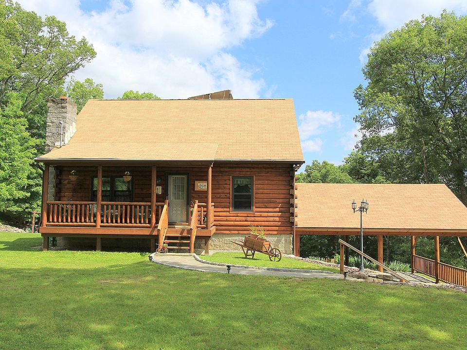 A wonderful log home situated on 1.73 acres of privacy surrounded by mature trees and specimen plantings. Relax on the front porch with your morning coffee and enjoy outdoor entertaining on the rear deck and expansive yard area. the interior is filled with charm and character. Log walls, beamed ceilings, wood floors, and a country kitchen create the ambience you have been looking for. Built as a three bedroom, the current owner is using one of the bedrooms as a formal dining room which can easily be converted back. the full lower level has a door to the rear yard. Solar hot water. An attached carport for two cars and parking for four cars in the driveway. Perfect year round residence or great weekend escape. It is a short drive to the Village of Cold Spring where you can enjoy many fine restaurants, antique shops, art galleries and specialty shops. there are summer concerts at the Gazebo on the Promenade overlooking the Hudson River and beautiful mountain ranges. Only 75 miles to NYC.