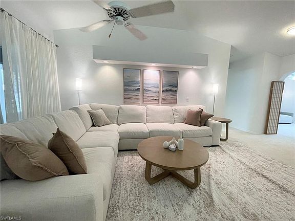 Winter get away available this 2026 season and 2025 off season! Do not miss out on this beautiful 3 bedroom, 2 bath second floor residence with volume ceilings, screened in lanai and a garage! This condo has been professionally decortated with gorgeous cream and tan tones. It is pristine with BRAND new paint, carpet and furniture! The "Villages of Emerald Bay" is a gated community west of 41 in a quiet area off Vanderbilt Drive. Close to beaches, shopping, restaurants and more. The community boasts 2 swimming pools, 2 whirlpools, tennis and pickle ball courts, lending library, clubhouse and more. Master Bedroom has a king bed , queen in 2nd bedroom and 3 bedroom used as den or bedroom with ULTRA comfrotable Serta Queen Conversion bed.