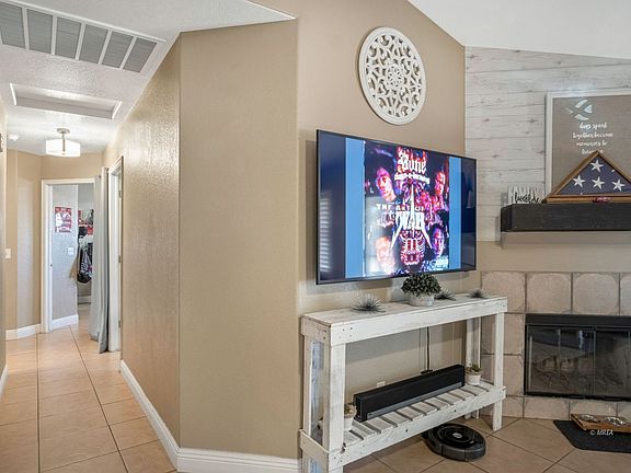 Single family home with NO HOA. Three bedrooms and two full bathrooms. Title flooring throughout. Vaulted ceilings. Fire place. Step out to your patio from the kitchen and also from the living room. Landscaped front and back yards.