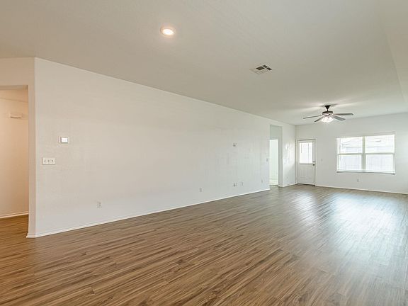 This spacious single-story residence is perfect for families seeking comfort and convenience. Equipped with a Smart Home Technology package and solar panels, this home is designed for modern living. As you enter, you'll find a cozy bedroom suite conveniently located off the front door, complete with its own bathroom and a generous walk-in closet. The primary bedroom, situated at the back of the home, offers a serene retreat. Two additional bedrooms share a stylish Jack-and-Jill bathroom, providing ample space for everyone. The heart of the home features an open-concept living area that seamlessly connects to the kitchen and dining room, making it ideal for entertaining. Each room is thoughtfully designed with ceiling fans and elegant designer pulls on the kitchen and bathroom cabinets. Step outside to enjoy the covered back patio, perfect for relaxing or hosting gatherings in your private backyard oasis. The neighborhood boasts fantastic amenities, including a community pool, park, playground, and basketball courts. Plus, outdoor enthusiasts will love the proximity to exciting recreational activities just minutes away, such as Five Mile Dam Park, the San Marcos River, Wonder World Park, and Purgatory Creek Nature Area. Don't miss out on this incredible opportunity to make this beautiful home yours!