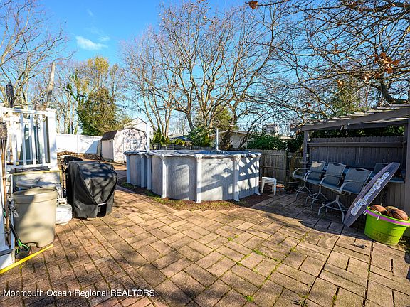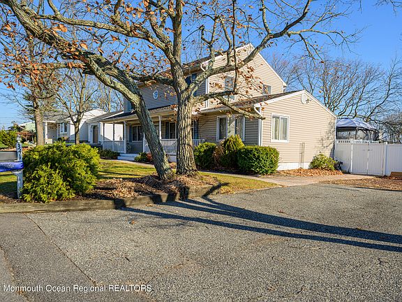 Expansive & Centrally Located Home with Above-Ground Pool & Spacious Loft! Upgraded from a single-story ranch to a two-story beauty, this 4BR/3BA, 2,430sqft residence is situated on a 10,000sqft lot in the desirable Lake Riviera section of Brick. Offering a storybook vibe, this home charms with a covered front porch, hardwood floors, large living room, welcoming family room, dining room & eat-in kitchen featuring stainless-steel appliances. Relax in the main-level primary bedroom with large closet & en suite. Two additional bedrooms, full bathroom are nestled on the upper-level, while the lower-level has a bedroom & full bathroom. Other features: double-wide driveway, laundry area, boiler room, fenced backyard, shed, & deck, near shops, schools, beach and more!
