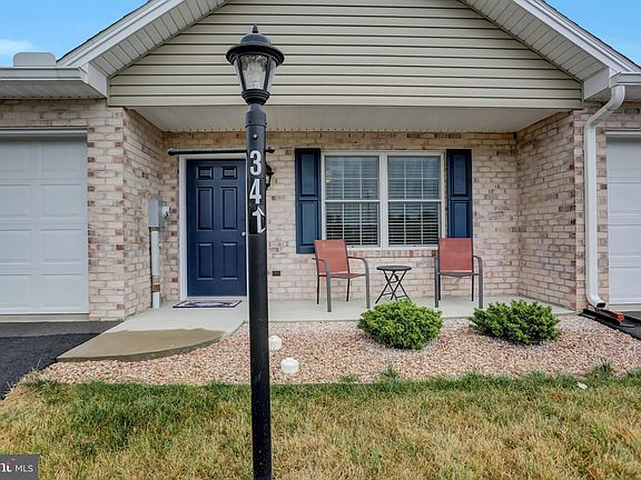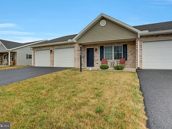This 2020 built one-level end unit townhome with 2 car garage looks brand new with upgraded features like a kitchen island and jetted walk-in tub! This modern floor plan includes the spacious and open living room, kitchen and dining area with vinyl floors for easy maintenance. The primary suite has plenty of room for a full king bedroom suit of furniture and features two closets and private full bath with walk-in shower and linen closet. The second bedroom is also very spacious with two closets. The laundry room includes a pantry/storage closet and washer and dryer with access to the back patio. The two car garage has extra room for storage plus cars, and easy access to the kitchen with your groceries. The monthly HOA is $105 and you can rest easy knowing it includes your lawn care, mulching, driveway snow removal plus your roof! Relax on the covered front porch facing the pleasant view of a common lawn area and call this your new home!