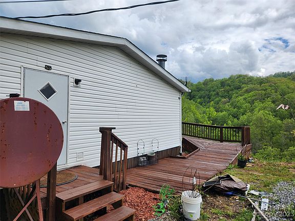 Long range views! Large covered deck, open design. Oversized kitchen w/island & bar, lots of cabinet space. Living rm & separate family rm w/gas logs, master with garden tub. Large walk in closets in bedrooms, large laundry/utility room w/water filtration system. Kerosene monitor heat system. 2 acres w/easy access, driveway was just regraded and graveled in 2022.