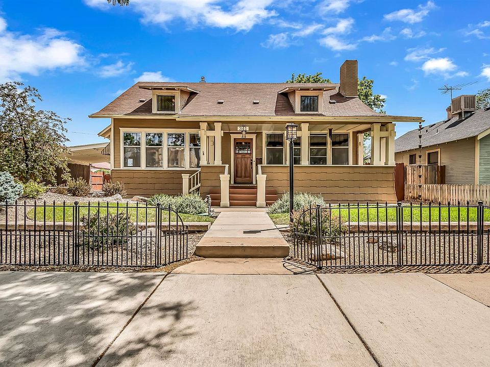 Charming and spacious turn-of-the-20th century bungalow. Updates with period styling in mind and modern function. Primary bedroom with walk-in closet. Enjoy coffee or tea on the front porch and relax in the amazing backyard. Not one, but two garages in the back. Maybe you dream of turning one into a guest suite or ADU. Home is on three city lots so plenty of space. Don't miss the fence with the mountain design of Colorado. Dry creek bed with flowers and plants. This is a one-of-a-kind home in the heart of Grand Junction. Walk to the library, downtown shopping, downtown activities, and close to parks.