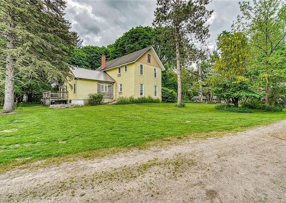 Time to Farm? Time to Build? Horse Farm? Sustainable Farm? Subdivide? With this property you can do whatever you have been dreaming of doing. Ontario Town tax, Webster Schools tax. Home has been partially renovated w/ Updated heating & A/C system, Electrical, Plumbing including Newer Septic, Windows and awaits your finishing touches. All Barns have new Steel Roofs as well. This homestead has something for everyone. Approx. 24 acres of cleared hay pasture balance is rolling with tree, wet areas & just a nice mixed terrain. This is a true steal at this price & will be gone within the one week closed bidding period so do not hesitate! Offers must be in by Noon on June 9th NOON.