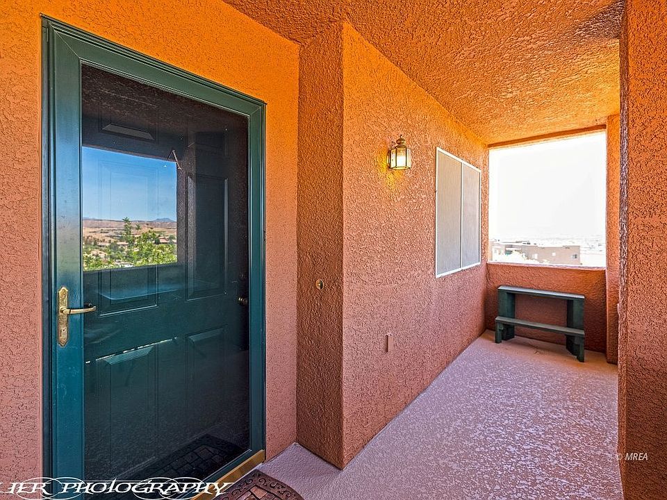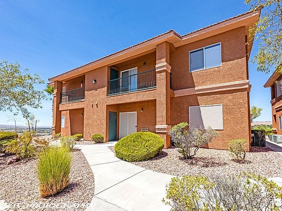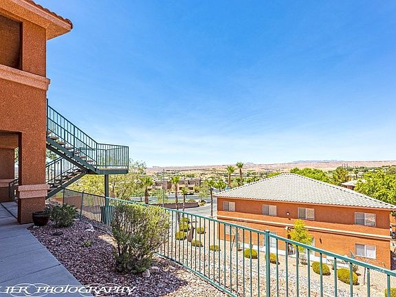 This beautiful falls condo with it's own 1 car detached garage is situated on the highest corner most building in the falls community. This means you get unobstructed panoramic views of the city, the whole virgin valley and multiple golf courses and casinos right from your front patio. The covered front patio also comes with it's own large storage closet. When you step inside you will find an open floor plan with 3 spacious bedrooms and 2 bathrooms. Beautiful custom shutters cover the windows along with sunscreens on the exterior to keep your home cool. The third bedroom has a large entrance for an option to install double doors for a den or office. When you walk through the master you will find a small back covered patio with another storage closet and amazing views of the mountains. The Falls Condos have a community swimming pool, open green space and barbecue/picnic area. The all inclusive HOA fee provides access to Master Community fitness facility, pool, spa, tennis, pickle ball courts and volleyball courts.