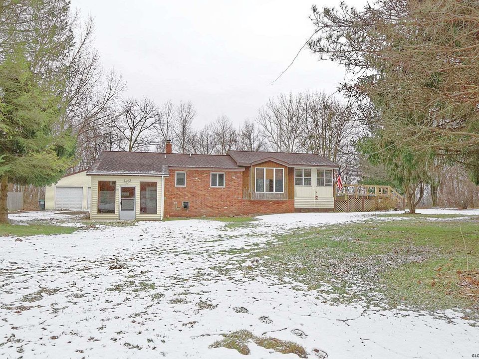 Single story ranch with potential! 3rd Bedroom potential in partially finished basement. Basement currently work out room. Easy commute to Albany or Saratoga. Huge lot with deck over looking above ground pool and a 2 car detached garage. Front entry mudroom with side enclosed porch.