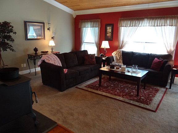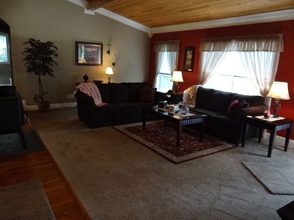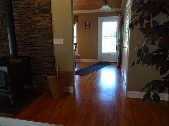 Exceptionally clean home! Lovely home with @3.6 acres sits back from the road, offering pretty country scene, cooling breezes, and private back yard. Many updates have been made to this home. The master bathroom has been redesigned and a low step-in shower was added. Throughout the home are many windows allowing lovely views from any area. A wood burning stove has been added to offer comfort for winter back up heat. The kitchen is a good layout for cooking, serving, and clean-up. Crisp black stove, range hood, dishwasher, and refrigerator remain with the home. Pretty kitchen cabinets, solid surface counter tops, eating/serving bar area. This is a different split bedroom plan - I think you will find it much better than most. When entering, from the attached garage, you step into the utility room with ceramic tile flooring - ideal to bring in your belongings and set them down.