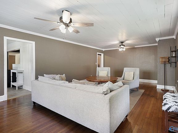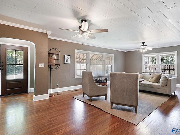 LOCATION LOCATION LOCATION! Charming 2,775 sq. ft. home 1/2 block from the center of downtown Guntersville with lake views of Lake Guntersville and Guntersville City Harbor within walking distance of seven restaurants. This unique home boasts beautiful original hardwood floors. Recent improvements include a new roof and updated kitchen. The basement is heated and cooled, has laundry hook ups, and an unfinished bathroom. With a finished basement, this could be a multifamily home with separate private entrances with parking in the backyard for five vehicles. The property zoning allows for multifamily use!