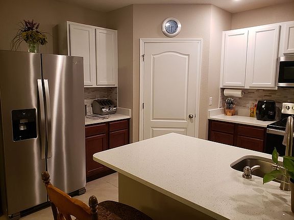 UPDATES: Quartz (sparkling) everywhere. New tile in living room(carpet removed). New plush carpet in every bedroom. Completely remodelled MASTER Bath (tile on floor/walls, fixtures, vanity, glass sinks, lights, frameless glass). KITCHEN quartz, new stainless steel Whirlpool applicances, mix wood and white cabinets, Moen faucets w/soap & garbage disposal button. 2nd BATH has quartz, white cabinets, glass bowl sink, new faucets, soap dispenser. EXTERIOR: stone facade, new color scheme, irrigation upgrades + wifi timer, concrete curbing around beds, full garden install including fruit trees (plumeria, chinese orange, avacado, lime, papaya, new 10ft. plum tree). INTERIOR: home has built-in security system panel with internet connected front door lock, camera/doorbell, front light,, garage door on wifi, finished/painted garage.