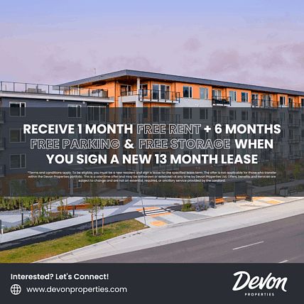 Experience condo-level finishes, balconies, and full-size washer and dryers. Relax on the expansive 2,100 SF rooftop patio, complete with a community BBQ, making it a perfect spot for entertaining. Vantage Apartments at Royal Bay also offers residents a state-of-the-art fitness center, parcel lockers, secure storage, underground parking with EV charging, secure bicycle rooms and much more.