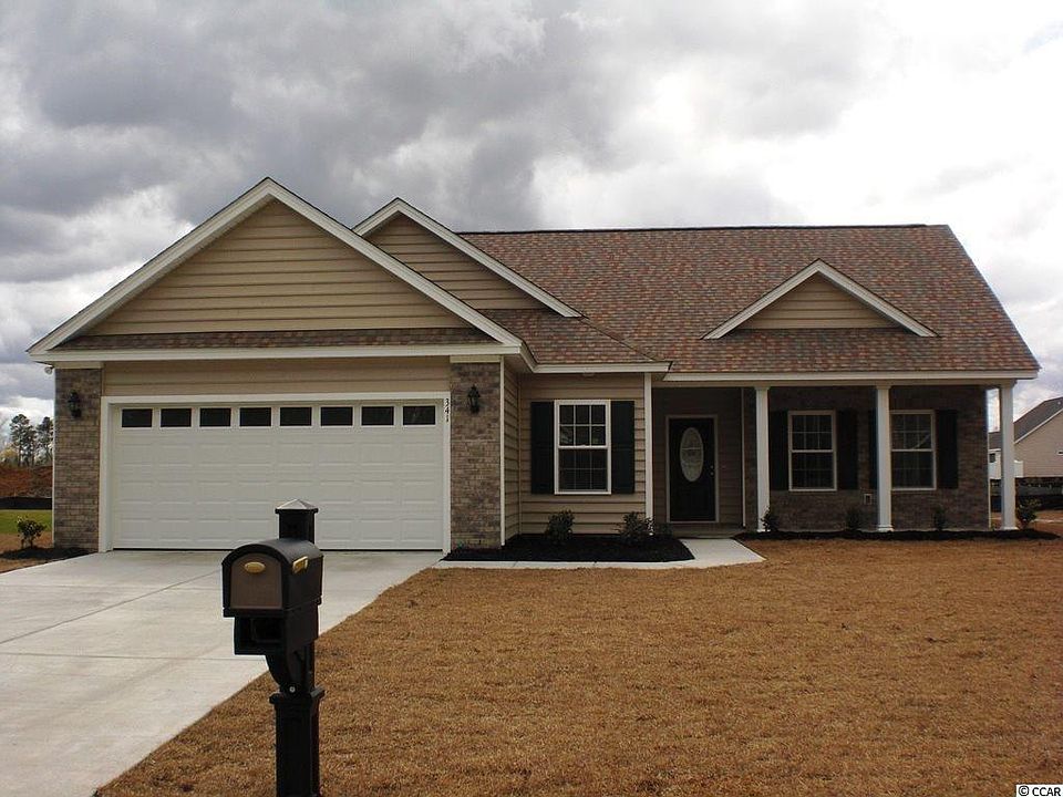 One of Beverly Homes Premier Communities in the Conway area, this Beautiful 3BR/2BA Dogwood Model with split bedrooms, 21X6 front porch, Screened Rear Porch. Open floor plan with vaulted ceiling through living area and kitchen. Walk in pantry closet, breakfast bar, stainless steel kitchen appliance package includes range, microwave and dishwasher. Laundry room, ceiling fan/w light in great room and master bedroom. 9 foot ceilings in Bedrooms 2 & 3. Spacious master bedroom with tray ceiling, walk-in-closet, 5' shower, linen closet. Screened rear porch. 50 year Warranty roof shingles, sodded yard with up to 14 pallets of sod, extra large garage with workshop area. All of our New Homes in TANGLEWOOD are built with a "Maintenance Free" Lifestyle in Mind. Close to historic Conway and only 30 minutes to the Beach. Call or visit our sales office today.