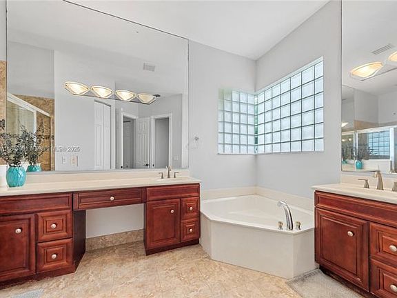 Real Estate Rental - 4 BR, 3 Bathroom House Lakefront 4BR/3BA home for rent in gated Weston community, The Landings. Situated on a quiet cul-de-sac street, this updated home offers an open layout with ceramic tile in main areas, luxury vinyl in bedrooms, and a remodeled kitchen with quartz countertops, a large island, custom cabinetry, and new appliances. The primary suite is a serene retreat featuring a sitting area, spa-style bathroom, and dual walk-in closets, all with tranquil pool and lake views. Custom closets, volume ceilings, and great natural light throughout. Enjoy a solar-heated chlorine pool, fenced yard, and peaceful lake views. Pool, landscaping, and pest control are included in the rent. Pet - weight limit of 50 lbs. Available September 1st. (Listing 3314736 Confirmed 9/3/2025.)