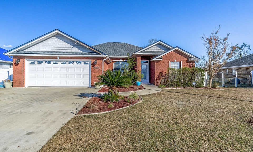New roof already on - - 4 bedroom, 2 bath brick home in Forest Walk neighborhood, close to Tyndall AFB. Tiled foyer leads to living room with 10' ceilings, a formal dining room that works as a home office and eat-in kitchen. An electric fireplace with ''nook'' above is the focal point of the living room, 8'' crown molding, bullnose corners and pre-wired for surround sound. The kitchen offers solid Corian countertops, stainless steel appliances, breakfast bar and a separate dining area. The master bedroom features trey ceiling and en suite with dual vanity, jacuzzi tub w/ separate shower and a walk in closet. The 3 remaining bedrooms are spacious and share a full bath. Home has a screened patio, large yard, sprinkler and security systems. All sizes/info are approx, please verify.