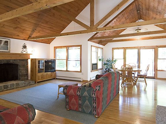 Updated, oversized contemporary ranch - light & bright open floor plan with extra large windows to let the sun shine in! Gleaming hardwood floors throughout, cathedral ceiling with exposed beams, new 3 season room, new 96% efficient boiler and hot water heater, new 4BR septic 2002, new 100' well 2003, new paved drive 2008, new Jotsul gas stove, and the list goes on! 2.7 acres of lush greenery, perennials and your very own recreational POND