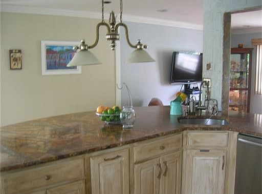 Open floor plan with a gourmet Kit,, with granite counters. Owner will replace their commercial grade stove, microwave and refrigerator with standard appliances. Some newer windows, dining with a bay window and a french doors leading to a large fenced in yard. Newer water heater, air condition, and sprinklers,