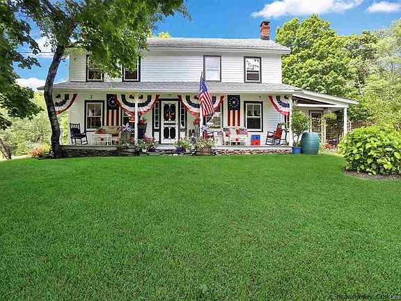 Welcome to Roundout Farm, the perfect escape to a magical +/- 125 acres paradise consisting of broad fields, panoramic views, dense mountaintop forest and multiple building plateaus, all located in the beautiful Catskill Mountains only 2:15 hours from Manhattan (home is being sold Turn Key with most furnishings). This extraordinary retreat has an 1850 4-bedroom farmhouse, lovingly preserved with totally furnished updated interiors. A wonderful country kitchen renovated this year with a second Jenn-Air stove, grill and oven. All 2.5 baths completely redone in 2019. Expansive property is park-like in so many ways, bordering hundreds of acres of State and NYC land, beautiful ancient stone walls frame some of the fields, gardens and trails.