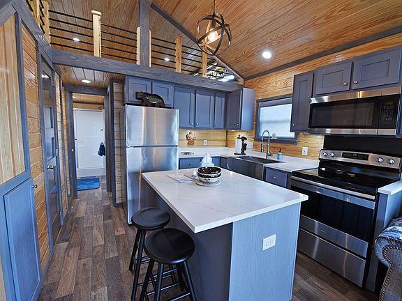Ready to begin your Mountain Life Makeover? Look no further! One of the largest and most beautiful properties in Crossing Creek! The owners can testify that this lot has never held water or flooded. This property has almost everything you could possibly want in an RV resort lot! The entire property is as close to flawless as one could find! Meticulously maintained Tiny Home with a loft! Park the largest of Rigs on the concrete driveway that has a full RV hook up! The welcoming home features a generous living area and master suite as well as French doors to your relaxing front screened patio. Enjoy cooking your favorite meals in the well equipped kitchen with high quality, full size appliances and quartz countertops and endless hot water from the Eemax tankless hot water system! Surround yourself in the lavish landscaping and the golf course quality grass yard! Enjoy cool summer nights and take in the long range mountain views on the double decker Star Gazer! Also included is the fully insulated shed with power, added storage space, electric mower and all the yard tools. Additional storage was added under the front steps and the stairs of the Star Gazer. Crossing Creek has all the amenities to make your vacations or full time living an absolute dream with pools, hot tubs, tennis and pickle ball courts and much more! Just a quick drive to town, this property is just what you have been looking for! Take the video tour at https://vimeo.com/943036821/6446b4852f?share=copy