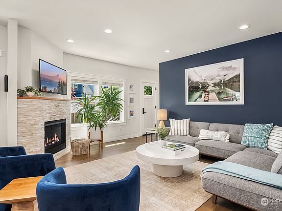Modern Craftsman located in desirable Phinney Ridge – this 2018 build has it all & lives like it is brand new! A grand entrance welcomes you to an open floor plan with a generous kitchen, living, dining & guest en-suite/office. Step outside to the beautifully landscaped backyard with a gas fire pit & BBQ. Upstairs offers 3 generous bedrooms; a primary suite with 5-piece bath, deck & remarkable views of the Cascades/Rainier, laundry & full bath. The basement features an ADU with exterior access, a bedroom, bath & kitchenette - great potential for a STR or to enjoy yourself. 1.5 car detached garage with EV charger, A/C, endless storage & more. Providing easy proximity to Greenlake, Ballard, dining, transit & all that Phinney has to offer!