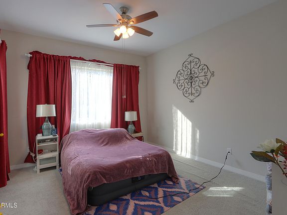 Quiet Living on this easy access Cul-De-Sac waits better than new 1469 sq ft 2 bed, 2 bath. With solar. Entertain with ease from an island kitchen that opens to the great room. Home includes Tahoe maple linen staggered cabinets, white Napoli granite with crescent edges, SS appliances, double shelf rollouts in bottom cabinets, Tile floors throughout, 10 ft ceilings, built in desk area in kitchen, 4ft garage ext, & more! Beautiful Three panel glass patio doors open to the landscaped backyard. Primary suite offer separate vanities, & walk-in closet. Take advantage of the heated pool & spa, sport courts, game room, fitness center, and hobby rooms at the Mission Royale community.