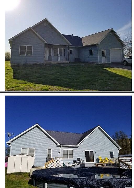 Now available in Blue Mound -1582 sq ft -3 bedrooms -2 full bath -full unfinished basement with a den -sitting on 5 acres -zoned ag1 which means livestock is welcome -not in the village it is considered to be county -city water, but has a septic tank - natural gas - house was built in 2006 - 1 attached garage - has 2 other garages on the property * 1 is insulated, w/ heat, air, it was used as a bait shop from 2017-2020 -24 ft grain bin pool in the back yard $240,000 firm