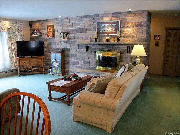 This sprawling bluestone ranch is perched on 3.3 acres, absolutely beautiful setting with waterfront view and access to the Neversink River! Home offers 3 baths, 3 bedrooms, (possibly 4) including Master bedroom/master bath w/marble shower, lots of closets for storage, open floor plan, spacious living room w/full wall stone fireplace, formal dining room, amazing 15 x 40 family room w/full wall of floor to ceiling windows with spectacular river views! Wait there is more! Oversized 2 car garage, laundry room and a huge basement with another fireplace! Folks you have to see this one, one of a kind prestigious home with a circular driveway! Close to all amenities, major hwys and commuter train to NYC, but still country living at it's very best! New water treatment system,New hot water tank with immediate hot waterRoof replaced with lifetime shingles.
