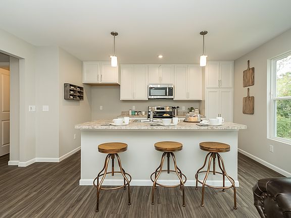 New construction by Fischer Homes in the beautiful community of The Townes at Streets of Caledonia featuring the Durham Coastal Classic plan. This home offers an open design with a family room and a view of the kitchen with an island. The kitchen boasts upgraded cabinetry and stainless steel appliances. Primary bedroom features an adjoining full bath with double vanities and a walk-in shower. There are 2 additional bedrooms, and a full bath on the upper level. A full basement affords plenty of storage. 1 car attached garage.