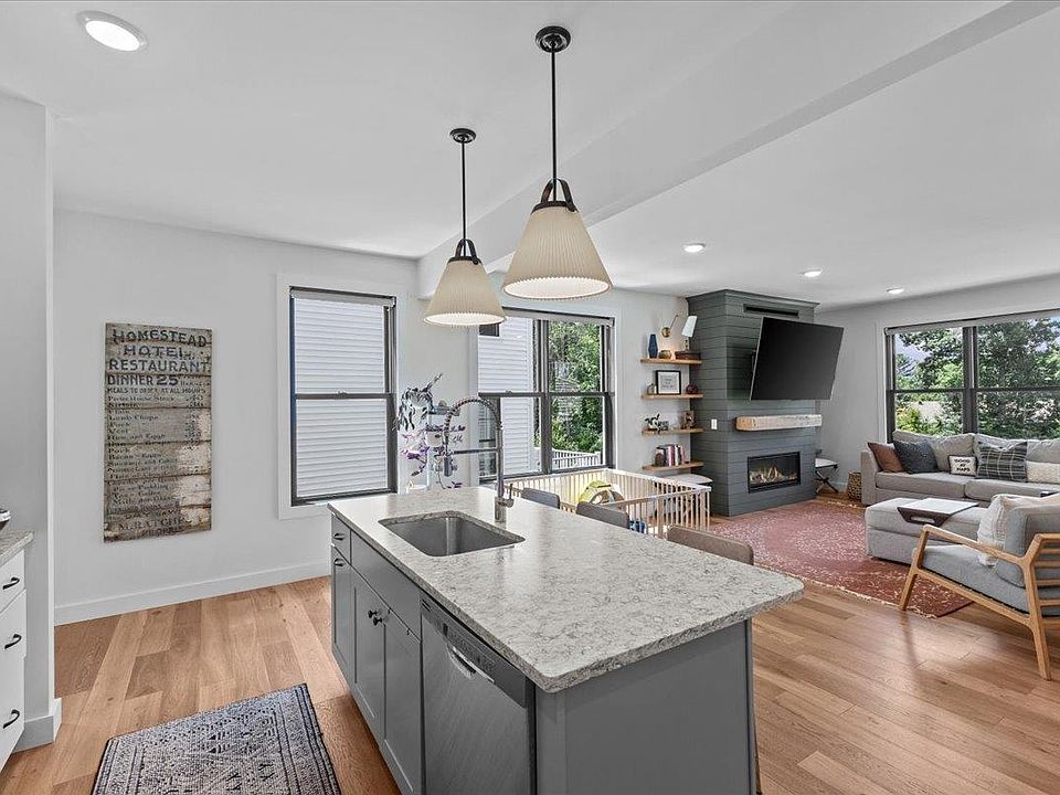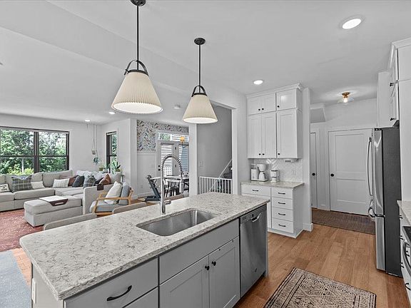 Welcome Home! This is the largest townhome available at Hillside, offering an expansive 2,579 sq. ft. of beautifully finished living space, thoughtfully designed with elevated finishes & upgrades throughout. From the moment you step inside, you'll notice the attention to detail - hardwood floors, quartz countertops, kitchen cabinetry extended to the ceiling, and a gas fireplace with custom shiplap surround. The dining room features elegant wainscoting, while custom molding & trim flow seamlessly through every room. Designed with both beauty & function in mind, this home includes custom closet systems, a functional mudroom, and a stylish loft area on the second floor. Enjoy the convenience of motorized blinds, an electric car charger, and smart thermostats. Unique pops of designer wallpaper and curated finishes bring an interior designer’s flair to every corner. The light-filled walkout lower level offers even more living space with luxury vinyl plank (LVL) flooring, an additional bedroom, full bathroom, and a spacious bonus family room—perfect for guests, hobbies, or entertaining. Step outside to your private deck or explore the community’s natural beauty with wooded walking trails, gardens, and a community park—all just steps from your front door. Energy-efficient and built by an award-winning construction team, this home offers both style and sustainability. With close proximity to shopping, schools, and major employers, you truly can have it all at Hillside.