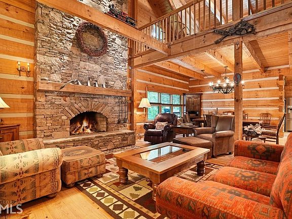 4BD, 3BA, Luxury Log Cabin on 2.75 Acres with deeded access to the Soque River and offering an extraordinary combination of privacy, luxury, and river experience. The home features incredible craftsmanship and architectural detail: hand-hewn and authentic dove-tail log and timber frame construction, dramatic dry-stack stone masonry fireplaces, wide-plank pine floors with rustic square-cut nails, and vintage fixtures and lighting. Kitchen has showpiece Heartland dual fuel range, island with bar seating, rustic shaker cabinets, stainless appliances, grilling deck, and walk-in pantry. Owners' suite has fireplace, luxurious soaking tub, separate tile shower with frameless glass, vintage dual vanity, and walk-in closet. Covered porch has plenty of room for dining al fresco and lounging and full-length rocking-chair front porch is both relaxed and welcoming. Upstairs has two bedrooms, bath with shower and galvanized vintage tub, plus loft area for home office or flex space. Terrace level has media room, comfortable guest bedroom and full bath. Home also has carport, flower gardens, and seasonal mountain views! Located in the gated community of Glen Meadow which features access to over 4000' of premier Soque River frontage where your family can enjoy year-round trophy trout fishing, tubing, paddlesports, nature hikes, and even swimming in one of the fabulous plunge pools! Only 5 miles to Lake Burton and convenient to Clarkesville! 2021-07-22