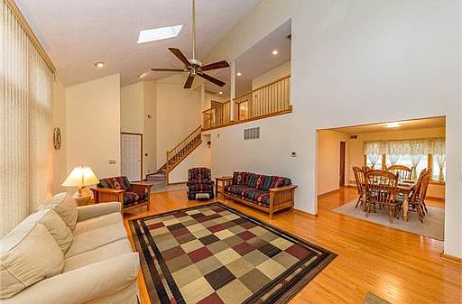Sprawling 3 bedroom and 2.5 bathroom colonial style home. Enter into a living room with vaulted ceilings, recessed lighting, skylights & fireplace. Formal dining room. Eat-in-kitchen with plenty of cabinet space, pantry. Powder room and laundry room off kitchen. The 2nd floor features 3 bedrooms and 2 full bathrooms.