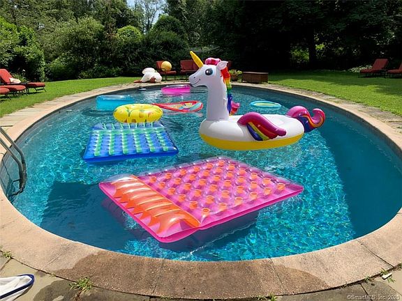 Summer sports-camp vacation rental at 341 Olmstead Hill Rd.- a birder's paradise with an in-ground swimming pool. Sports activities on-site and in abutting parks include swimming, hiking, birding, biking, rowing, gardening, basketball, softball, flower pressing & piano playing. Converted Summer home with 5-bedrooms, 4.5 baths, huge screened-in porch, floral garden terrace, bridges across streams, pond with a rowboat, spacious back yard, and the abutting Allen's Meadows Park. Privately set on 4-landscaped acres with a flower/vegetable garden, yet walking or riding distance of public gardens, playing fields, & a public park. A 15-minute walk brings you to the Cannondale train station connecting to the New York/New Haven line in Norwalk. Wilton Town Centera classic New England town with a full complement of stores, markets, & diverse restaurantsis a 10-minute bicycle ride away from the property along the West Loop of the bucolic Norwalk River Valley Trail (NRVT), a 4.5-mile biking/jogging/walking path. NRVT from Olmstead Hill Road (the West Loop) is almost entirely off-road to Town Center. It runs through Allen's Meadow (which houses the Town Gardens and several ball fields) along the Norwalk River to Merwin's Meadow -a park with playground & pond. After passing through yet another ball field, you will arrive at Wilton Town Center. Central air; pet-friendly. Minimum 6-week Summer rental $36K or 2-month July 1st - August 31st rental for $40K. This property inspires!