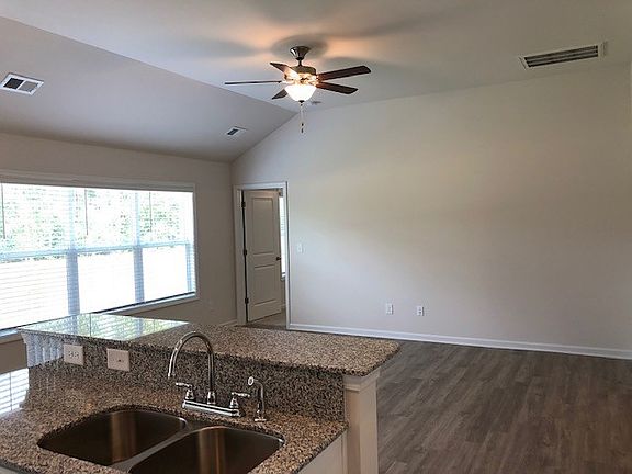 This floorplan offers an Open concept with a Beautiful Kitchen featuring Granite Countertops, Island with Granite overhang for Bar Stools, Recessed Lighting, Large Pantry, and Eat-In Area. Kitchen flows into adjoining Great Room, all with a Vaulted 10ft ceilings. Entry Hallway, Family Room, and Kitchen all with Beautiful flowing floors! Spacious Primary Bedroom with Beautiful Tray Ceilings and Large Walk-In Closet! Primary Bath with Garden Tub. You will find Walk-In Closets in both Secondary Bedrooms and a Secondary Bathroom with Granite Countertops and Tub/Shower. Fenced Rear Yard. Garage with Remote. Lexington School District One!