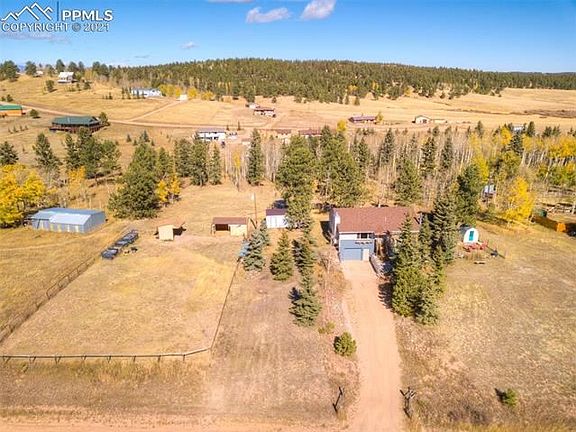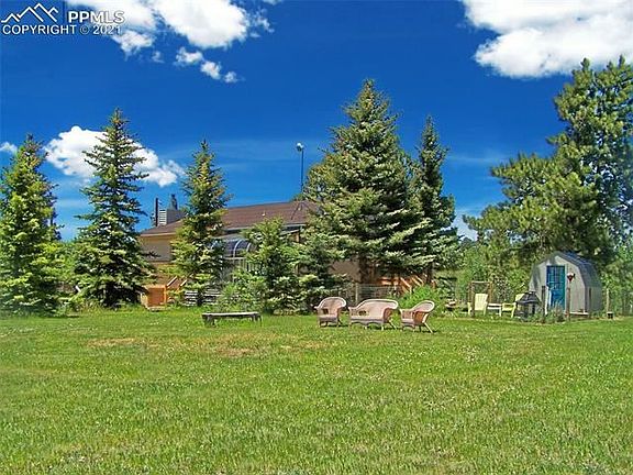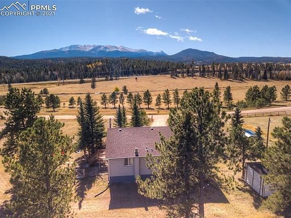 Your Mountain Retreat just 7 minutes from Woodland Park yet Worlds Away! Enjoy Horse Property or a Sustainable Garden w/the 12 GPM Domestic Well and no HOA. Oh and the Pikes Peak View - Best you'll get! Real Mountain Living on 2+ Beautifully Treed & Fenced acres w/Full South Facing Views of the Peak. Elk migration & Wildlife galore for those seeking a retreat from society. Maintenance Free home featuring a newer roof, brick & vinyl siding. You'll appreciate the Comfortable Sized Rooms thru-out this home, upgraded insulation and 2 wood stoves for a very Energy Efficient Home. Lovely Living Rm with undeniably the Best of Views w/Wood Stove & New Laminate Flooring. Spacious Eat In Kitchen perfect for Gatherings & more Cabinets than you can imagine. Views & the Passive Solar Gain from the Atrium will make this the Hub of the Home. Entrance to side yard with a BBQ area, Outside Fireplace, Play Area & cute Play/Garden Shed make this an Entertaining Friendly Home. 2 Main Level Living Bedrooms are Spacious w/Double Closets, Huge Family Room features a 2nd Wood Stove and has plenty of room for a Home Office, Pool Table, Media Room or Home Gym. If you love your Horses you couldn't find a better Sanctuary. 3 Fenced Pastures w/Loafing Shed w/Electric, Hay Storage and an outstanding covered Heated Waterer w/ Automatic Water Feed serviced from the garage. The Level driveway will be appreciated for a mountain property, especially in the winter. Two spaces wired for a hot tub; the atrium and outside in the family fun area, both for you to enjoy the magnificent Views of the Peak & Tranquility. The Atrium off the Kitchen has been used for a Hot Tub but would make a terrific South Facing Garden Area. Large interior Storage Room. Septic Pumped & Inspected. Radon System. Only 20 minutes from Colorado Springs, 1/2 Hr from the Dream Stream, Close to Cripple Creek gambling, 1 1/2 Hrs from Breck & just minutes from National Forest Trails. Opportunity is knocking to change your life!
