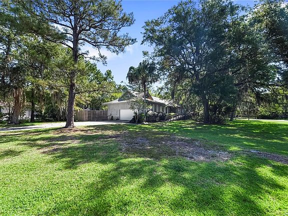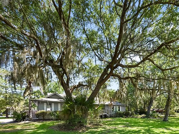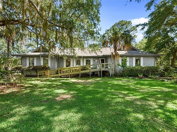 Majestic oaks grace the .55-acre yard. Home features a side entry garage, living room, dining room, den, 3 bedrooms, 2 full baths, laundry room, office/craft room, screened porch, fenced yard and shed. No carpet in the home, all floors are wood look laminate or tile. The front door is solid wood with a side light. Living room and den with new ceiling fans, new canned lights, wood trim and crown molding. Separate dining room. The kitchen features an island, wall oven, solid surface counters, tile back splash, tile flooring, painted wood cabinets, large walk-in pantry, and a skylight. Den features a stone fireplace and opens to screened porch. The primary bedroom has 2 closets and an attached bath. The attached bath features tile walk-in shower, double vanity, and granite counters. Two linen closets in the hall; one is almost 5’ wide. Hall bath features double vanity, granite counters, double linen closet with a door separating the toilet and tub/shower with tile surround. 2018 heated SF and .55 acres per appraisal. Screened porch overlooking the fenced back yard with mature fruit trees and raised beds. Corner lot provides privacy with road on 3 sides. River Oaks Subdivision is an established subdivision with about 40 well maintained homes; some on deep water or marsh front and others are interior homes all with no HOA. The subdivision was planned around cutting as few trees as possible with the road winding around the trees. You can enjoy the shady ½ mile loop road with a marsh breeze.
